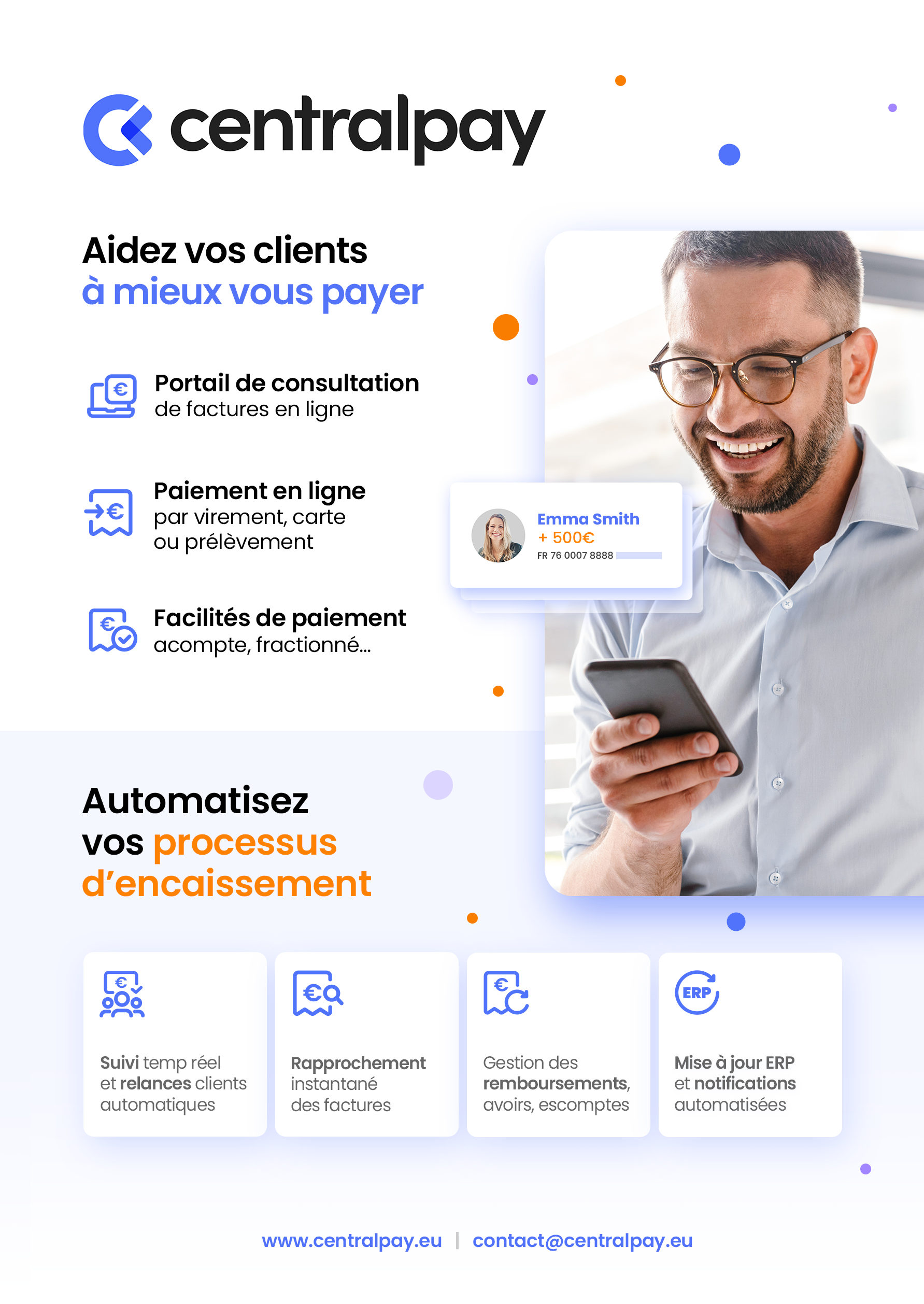 Agréée Établissement de Monnaie Électronique et régulée par la Banque de France, CentralPay accompagne les entreprises et plateformes dans la collecte, la gestion et l'unification de leurs encaissements afin de les aider à optimiser les coûts opérationnels.